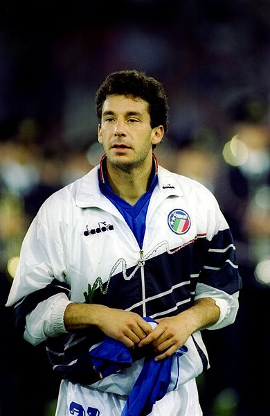 Vialli contributed to Italy’s third-place finish on home soil four years later with several assists, despite going scoreless throughout the competition, and performing below expectations. Although Vialli was initially in Azeglio Vicini’s starting XI at Italia 90, the surprisingly incredible form of poacher and eventual Golden Boot and Golden Ball winner Antonio ‘Totò’ Schillaci throughout the tournament, combined with Vialli’s struggles in front of goal, saw Vialli pushed out of Azeglio Vicini’s starting line-up in the knock-out stages of the World Cup. Moreover, Schillaci’s highly effective link-up with the talented young second striker Roberto Baggio seemed to convince Vicini that theirs was the strongest possible Italian offensive partnership. Indeed, Vialli’s ‘goal twin,’ Roberto Mancini, was even less fortunate, as he failed to make a single appearance throughout the tournament, in part due to the effectiveness of the diminutive Schillaci–Baggio attacking duo, which complemented Vicini’s attractive playing style. Luca Vialli still had some success as a provider for Schillaci, however, assisting ‘Totò’s’ only goal of the match in the opening win against Austria in Rome with a cross. However, he later disappointed and missed a penalty in the following 1–0 victory against the United States, hitting the post after the keeper went the wrong way; it was ultimately playmaker Giuseppe Giannini who scored the winner to seal a passage to the next round, although Vialli was also still able to play a role in the goal, yet again demonstrating his vision and creativity with a clever dummy, letting Donadoni’s pass travel between his legs to meet the midfielder’s run, who then finished off a wonderful team move. With Vialli being rested for Italy’s final group match, Baggio was then given his first appearance of the tournament alongside Schillaci against Czechoslovakia, with both players performing well and scoring in the a 2–0 win. After remaining on the bench behind Schillaci and Baggio in Italy’s wins over Urugauy and Ireland in the round of 16 and quarter-finals respectively, with Totò proving to be decisive with his goals yet again, Vialli was later also at the centre of a controversial managerial decision. Vicini strikingly elected to start Vialli again in the semi-finals against the defending champions Argentina, led by the legendary Diego Maradona, at the San Paolo Stadium in Naples. The sudden change to the starting line-up was surprising to say the least, given Baggio’s form; Vicini reportedly told Baggio that he looked “tired,” and later commented that he didn’t regret the decision, however, as Baggio came off the bench and played part of the second half and all of extra-time. Although Vialli did play a role in Schillaci’s opening goal upon his return to the starting line-up, with the latter scoring off the rebound after goalkeeper Goychochea had parried Vialli’s initial shot, Luca, once again, did not have the best performance. Baggio, on the other hand, looked much more dangerous when he came on for him in the second half following Argentina’s fortunate equaliser from Claudio Caniggia, after goalkeeper Walter Zenga’s uncharacteristic error (this was the first goal Italy had conceded all tournament after setting a record unbeaten run); the Italian fantasista even came close to scoring from a free-kick, and played a role in Ricardo Giusti’s sending off. After Italy were eliminated on penalties (the only match of the tournament that Italy did not win), the decision not to start Baggio was criticised in the media. The former subsequently got the nod ahead of Vialli in Italy’s 2–1 victory over England in the bronze-medal match, and scored once again, along with his partner Schillaci. Vialli was subsequently excluded from the national team for several months. Following the tournament, Vialli went on to say that he had struggled with several fitness, physical, and health issues over the course of the summer of 1990, which negatively affected his form and his state of mind throughout the tournament. Many fans and pundits still do wonder whether Italy would have beaten Argentina in the semi-final, and even gone on to win the tournament over eventual champions West Germany had Baggio started alongside Schillaci, seeing as they combined so well, and when the former did have an impact and improve the team’s gameplay upon coming on. However, one does also wonder whether Vialli might have been able to discover his true form playing alongside his Sampdoria attacking ‘twin’ Mancini (not playing Mancini was a decision that Vicini did regret this time, however), and whether the two should have been given at least a chance to play together. Regardless of their missed opportunity at Italia 90, their unquestionable impact on Italian football, both as successful managers and two of Italy’s greatest forwards ever, will always be remembered, and the pair were rightly inducted into the Italian Football Hall of Fame in 2015.