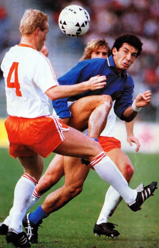 Vialli did also have some international success at youth level initially, however, contributing to the azzurrini’s respective third and second place finishes at the 1984 and 1986 UEFA European Under-21 Football Championships, finishing as top-scorer of the latter edition of the tournament with 4 goals, as Italy lost out to Spain on penalties in the final. He scored a total of 11 goals in 20 appearances for the U21 side. He went on to make his full debut for Italy in 1985 in a friendly loss against Poland, but would only score his first senior international goal the following year, in a Euro 88 qualifier against Malta, later also scoring a spectacular brace, in typical Vialli fashion, in a 2–1 win against Sweden during qualifying. Uniquely, he also rather remarkably won the Military World Cup with Italy in 1987, during his years of national service.In total, he scored 16 goals in 59 appearances for Italy at senior level. Vialli was in strong form alongside his club teammate Roberto Mancini at Euro 88, scoring in a first round victory over Spain en route to the semi-finals, where Italy were eliminated by the Soviet Union; Vialli was even included in the team of the tournament for his performances. He also featured in the Azzurri’s (“Light Blues,” in Italian, a reference to their Savoy blue kit) 1986 and 1990 World Cup squads; he made four substitute appearances in a round of 16 exit in the former edition of the tournament under legendary Italy manager Enzo Bearzot, with Vialli serving as a back-up to star Bruno Conti in the right wing position.